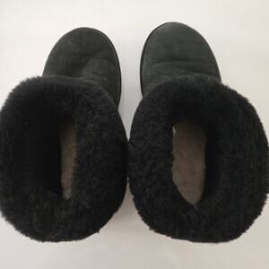 UGG Classic Black Mini Fluff Shearling Collar Ankle Bootie, Sz 8, Style 1106757
