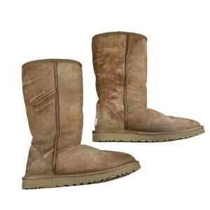 Brown classic tall leather boots from Ugg in size 8. There's some discoloration on the backs of the boots as shown - could possibly be professionally cleaned.