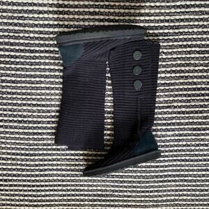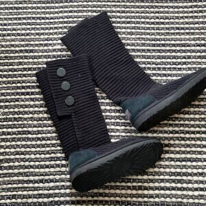 🌿UGG Classic Cardy Black Womens Tall Fold Down Knit Button Boots 9