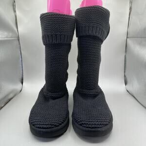 UGG Classic Cardy Boots Womens Size 11 Black Knit Button Tall Winter Cozy