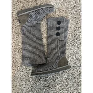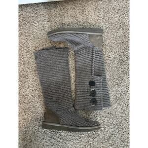 UGG Classic Cardy Gray Knit Button Boots Women’s Size 8 Cozy Tall Style