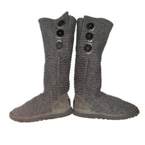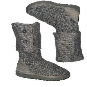 Grey Classic Cardy boot size 6. These do have heel drag . (see pics)The left more than the right , but still have a lot of life in them They retail for$149. So Im selling low to consider the flaw (heel drag).Other than that they are in great condition .Beautiful knit upper in a wool blend features a suede heel guard and nylon binding for durable wear all season long. Three oversized wood buttons allow the boot to be worn up, slouched down, slightly unbuttoned or completely cuffed down.