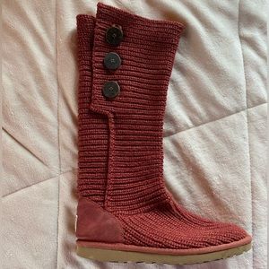 Maroon sock boots! I love these so much. I have them in a few colors. You can raise and lower the tops to create different looks. Great for around the house, but I wear them out all the time. Really dresses up leggings 👌