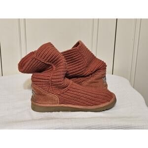 UGG Classic Cardy Mid Calf Knit Crochet Boots Size 8 5833 Sheepskin Footbed