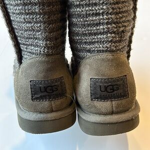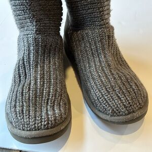 UGG Classic Cardy Gray Knit Tall Boot. A cute cable knit that’s convertible: pull it all the way up, slouch it down a bit or fold all the way over for a shorter style. Sheepskin insole. Rubber outsole. Excellent condition! Size 6