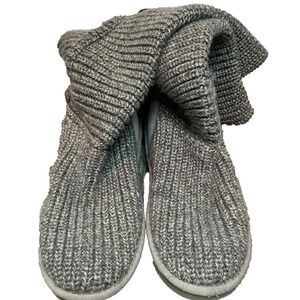 UGG Classic Cardy Womens Sz 8 Gray Knit Wool Knee Boots Sweater Buttons FLAW