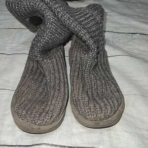Preloved condition. UGG Classic Cardy Gray Crochet Button Boots Sweater.
