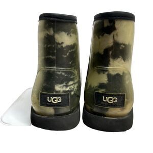 The UGG Classic Clear Women's Round Toe Waterproof Slip On Ankle Rain Snow Boots in size 7 are stylish and versatile boots designed for women on the go. These boots feature a slip-on closure for easy wear, a round toe shape for comfort, and a waterproof design for protection against the elements. With a flat heel and rubber outsole, these boots provide stability and support for all-day wear. The ankle height make them perfect for both casual and formal occasions, while the breathable fabric ensures your feet stay comfortable in any weather condition. Made by UGG, these boots combine fashion and function for a must-have addition to your footwear collection.