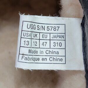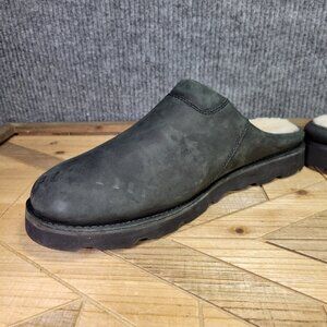 UGG Classic Clogs Men's 13 Smooth Black Leather Sheepskin Slip-On Slippers.