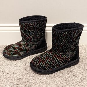 UGG Classic II Graphic Stitch Black Rainbow Girls sz 3