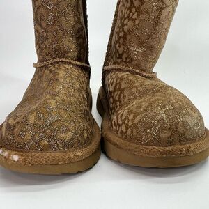 UGG Classic II Kids Glitter Leopard Boots Chestnut 13