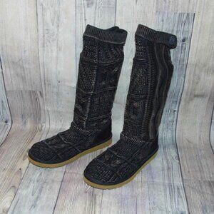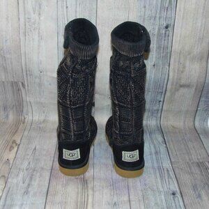 PRE-OWNED Ugg Classic Knit Patchwork black tall side zip boots, womens size 7.