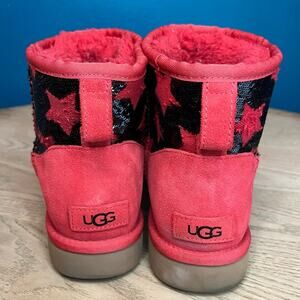 UGG Classic Mini Boot Sequin Stars Sparkle Red Patriotic USA Women’s Size 9
