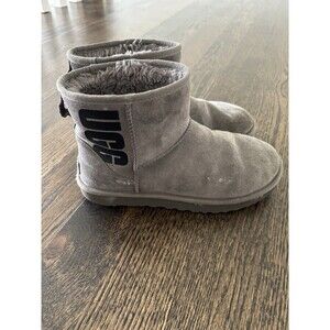UGG Classic Mini Boot With Logo for Women, Size 10 Gray