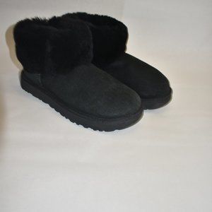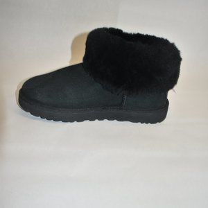 UGG Classic Mini Fluff Genuine Shearling Bootie Black 9 MSRP $195 1106757