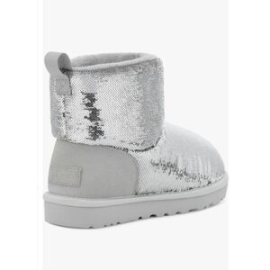 Shimmering sequins illuminate a classically shaped boot set atop a SugarSole EVA outsole with an embossed logo tread pattern. The UGGplush lining is a moisture-wicking textile made from a wool-rich blend but crafted to feel and wear like genuine shearling.
