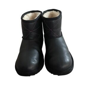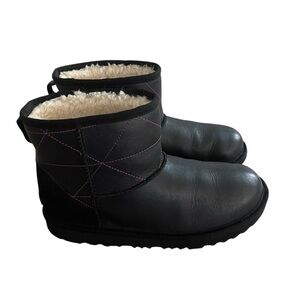 UGG Classic Mini Pearlized Black Leather Ankle Boots Women Size 6