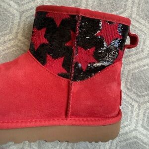 UGG Classic Mini Sequin Stars Ankle Boots Red Black Size 7 Women’s