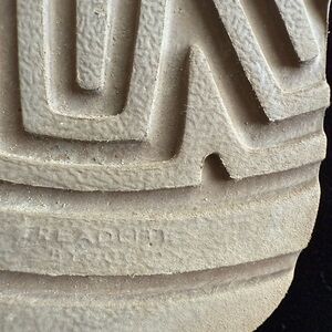 Preowned. There is a slight bit of discoloration on inside external of the right boot which is barely noticeable. The bottoms are totally clean and the rest lookin’ good!