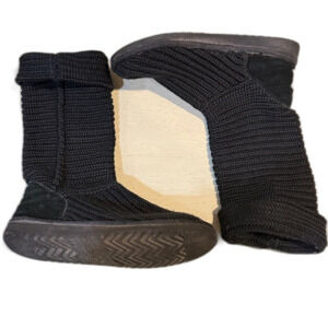 Cozy and comfortable UGG Australia 5814 Classic Cardy tall tan pull on boots. Chunky sweater knit material featuring a cuffable shaft that can be worn up, slouched down, or completely cuffed. Plush genuine shearling and UGGpure lining in the heel and footbed add warmth. Pair these boots with athleisure wear or dress them up with slim pants and a leather jacket.