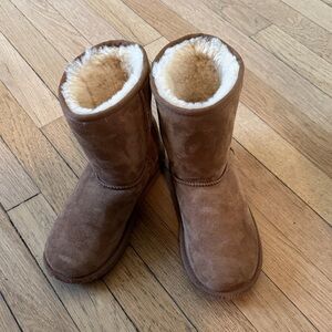 Warm UGG boots with plush sheepskin lining. Ideal for winter comfort.