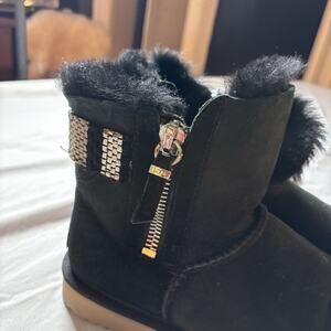 UGG Classic Short Aztek Woven Suede Double Zipper Fleece Lined Boots Sz 7
