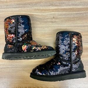 UGG Classic Short Boot / Winter Boot / Black n Copper Reversable Sequins Size 7