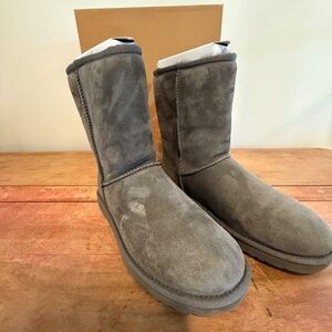 Stay cozy in style! UGG Classic Short Boots, Grey, Size 8. Soft suede, plush sheepskin interior, and iconic comfort. Gently worn, ready for chilly days and casual outfits.