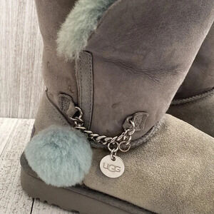 UGG Classic Short Charm Grey suede SHEEPSKIN BOOTS SIZE 7