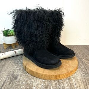 *UGG | Classic Short Curly Sheepskin Cuff Mongolian Black Suede Boots Size 6