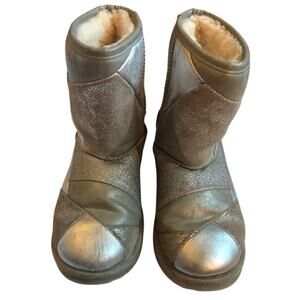 UGG Classic Short II Silver Gray Leather Patchwork Snow Boots Girls Size 5