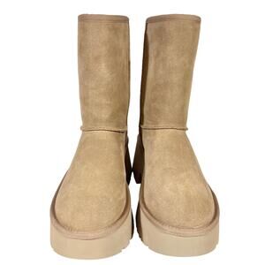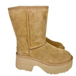 UGG Classic Short New Heights Boots Women 8 Chestnut Suede Plush Platform New