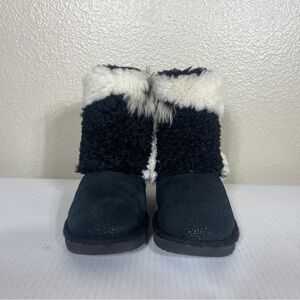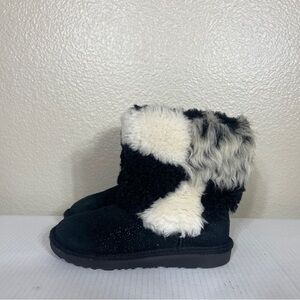 UGG Classic Short Patchwork Fluff Boot Black Youth Size 2