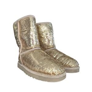 UGG Classic Short Sequin Bling Boots Insulated Size 8 Silver