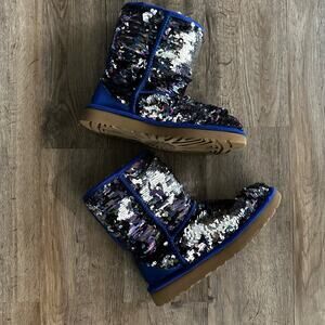 UGG Classic Short Sequin Boots Fully Lined Navy Color Women's U.S Size 6
