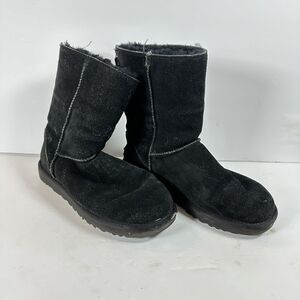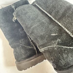 UGG Classic Short Zip Black Boots Women's Size 9 Suede Wool Lined GUC