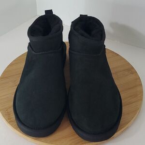 UGG Classic Ultra Mini Boot Black Suede Wool Ankle Shoe