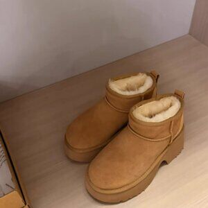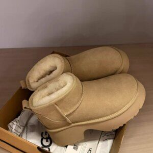 Lean into sky-high vibes with the Classic Ultra Mini New Heights. Designed with our suede upper, UGGplush™ lining, and a bold cropped shaft. This Classic Ultra Mini gets a bold new update with a chunky notched platform and a 3" heel.