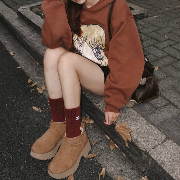 Lean into sky-high vibes with the Classic Ultra Mini New Heights. Designed with a suede upper, UGGplush™ lining, and a bold cropped shaft. This Classic Ultra Mini gets a bold new update with a chunky notched platform and a 3" heel.
