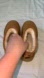 in almost like new condition, they do have a couple scuffs on them as pictured, & a small pin hole on the side. not very noticeable at all when wearing & you might be able to treat the scuffs!