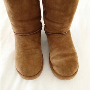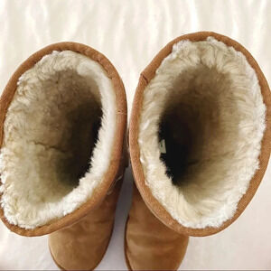 EXCELLENT CONDITION UGG Classic Women’s Tall Boot in Chestnut. Taken care of extremely well. Very little/no obvious wear, tear, or staining. Shearling lining is still fluffy and clean. Please comment below if you would like specific pictures.