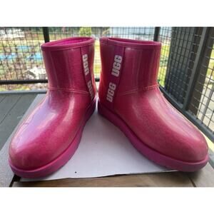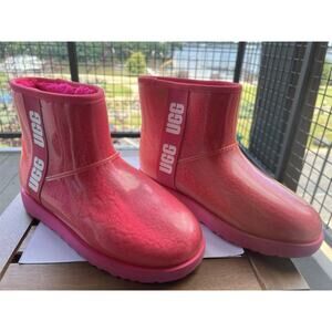 UGG Classic clear mini hibiscus pink waterproof ankle women's boot Size-8