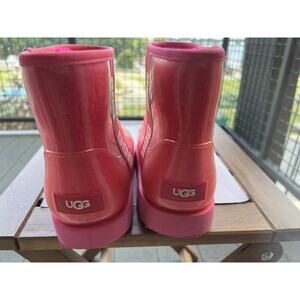 UGG Classic clear mini hibiscus pink waterproof ankle women's boot Size-8. Condition is Pre-owned. Shipped with USPS Ground Advantage.