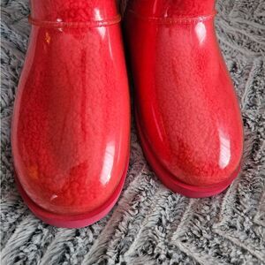 Warm on the inside and waterproof on the outside, our Classic Clear Mini gives you the best of both worlds and stands out in all levels of downpour. Updating the iconic original, this new waterproof Classic delivers fashion, function, and feel – all in one. Lightweight and weather-rated to temperatures as low as -4 °F, it's ideal for rainy days in the city, offering coziness you can see with a translucent waterproof upper enclosing curly faux shearling and our UGGplush™ upcycled wool blend.