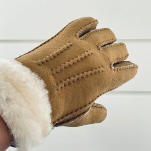 Incredibly soft and cozy genuine shearling trimmed gloves.