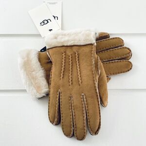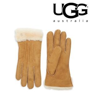 UGG Classic Tasman Exposed Sheepskin Shearling Winter Gloves In Chestnut Small