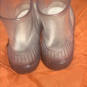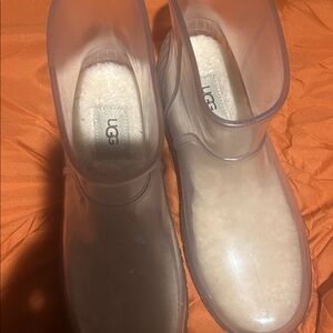 UGG boots with a clear exterior and plush shearling lining. Ideal for a modern style.