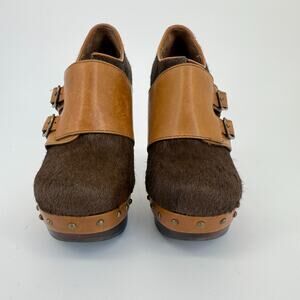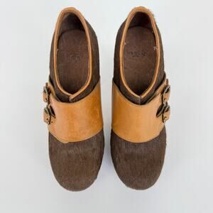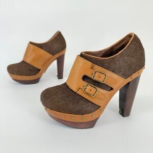 UGG Clog Illana Calf Hair Retro 70s Boho Booties Platform Heels Buckle Size 6.5