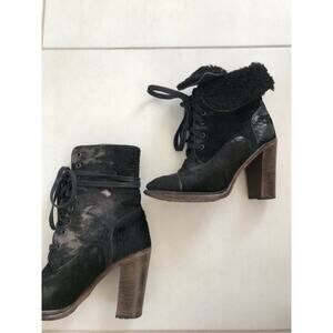 UGG Collection Piera Leather Calf Hair Sheepskin Lace Up Boots
