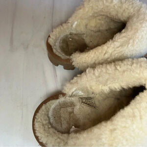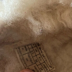 Shearling rubbed at heel area but sole and rest of upper in excellent condition, lots of life left.